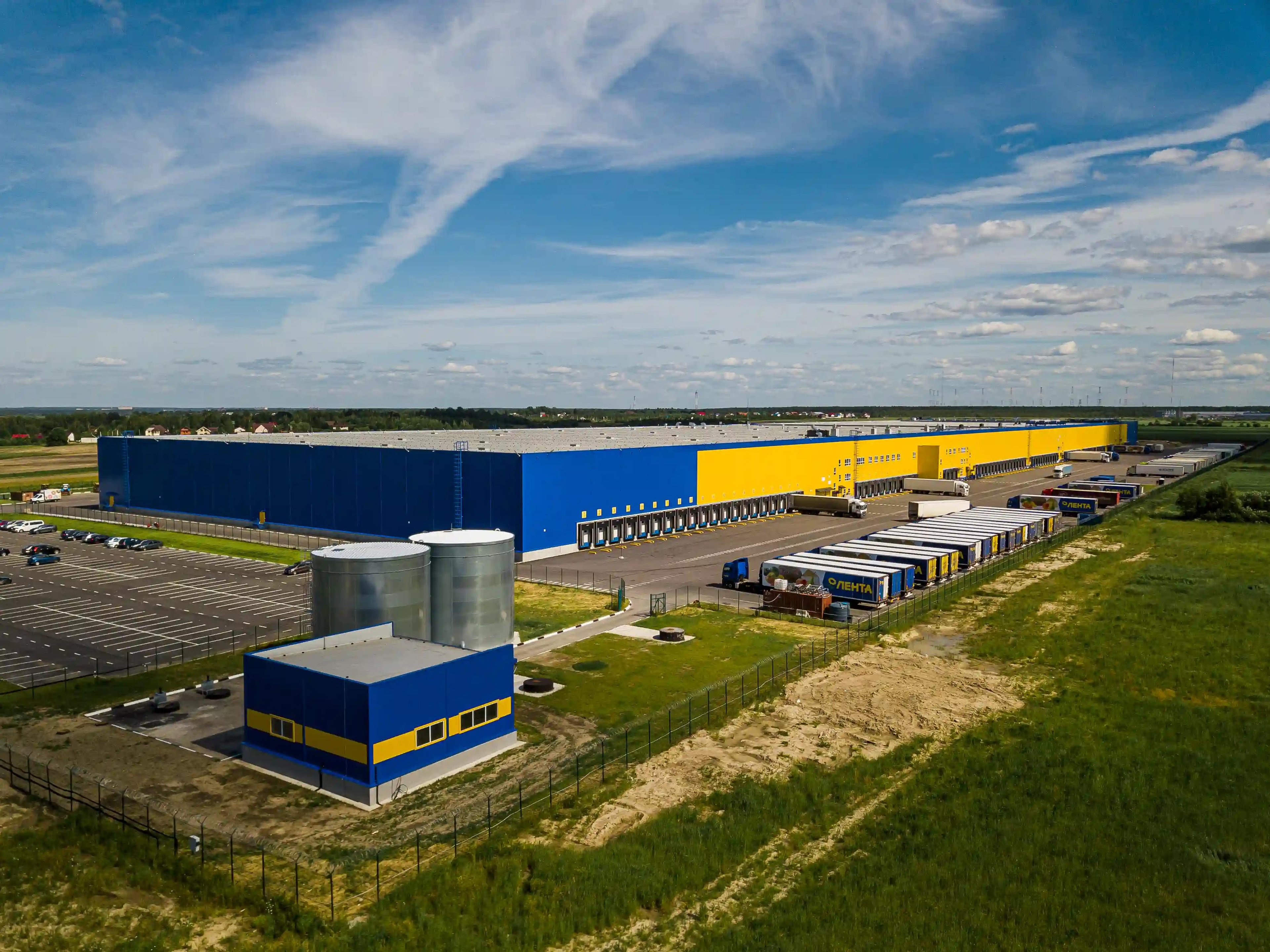 "Лента" - это полностью автономный складской и производственный объект, включающий в себя заготовочную фабрику полуфабрикатов и кулинарных изделий, 6 отделов с различными температурными режимами, в том числе сухим, холодильным, морозильным. РЦ позволил централизовать хранение, повысил качество продукции и позволил сократить время доставки.